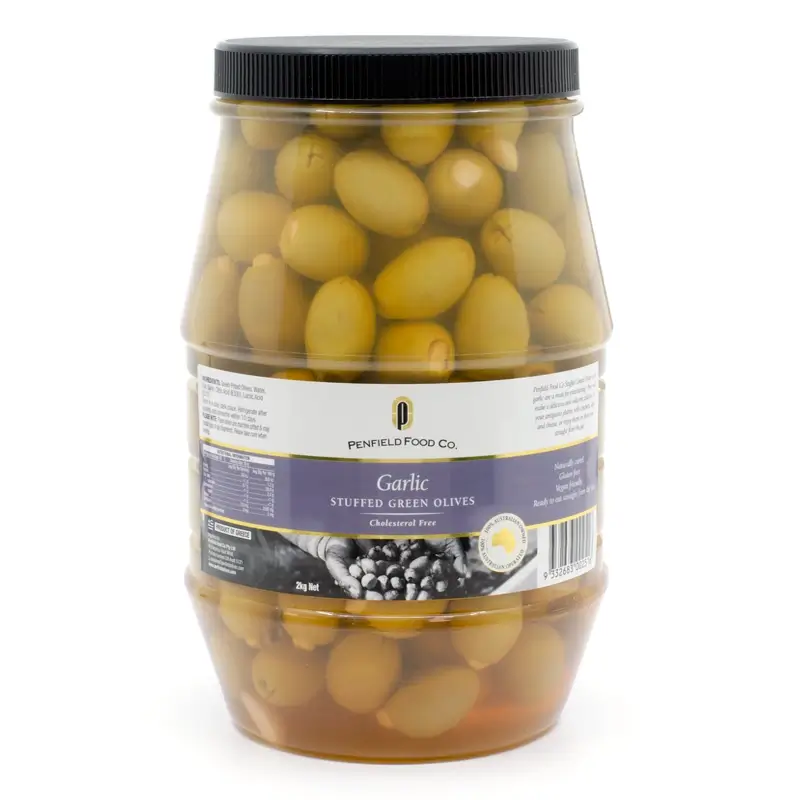 Penfield Food Co premium Greek Green Olives stuffed with aromatic garlic deliver a bold, savoury flavour in every bite. Ideal for antipasto platters, cheese boards, salads, or adding depth to pasta dishes and pizzas. Enjoy straight from the jar or lightly marinated with extra virgin olive oil and herbs. A classic favourite that brings big flavour to effortless entertaining.