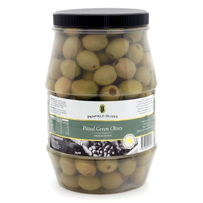 Penfield Food Co prime Greek Pitted Green Olives full of flavour and have been pitted for your convenience. Great added to antipasto, cheese platters, salads, or to your favourite pasta sauce and pizza. Perfect for marinating with extra virgin olive oil, lemon zest and herbs. A must for entertaining!